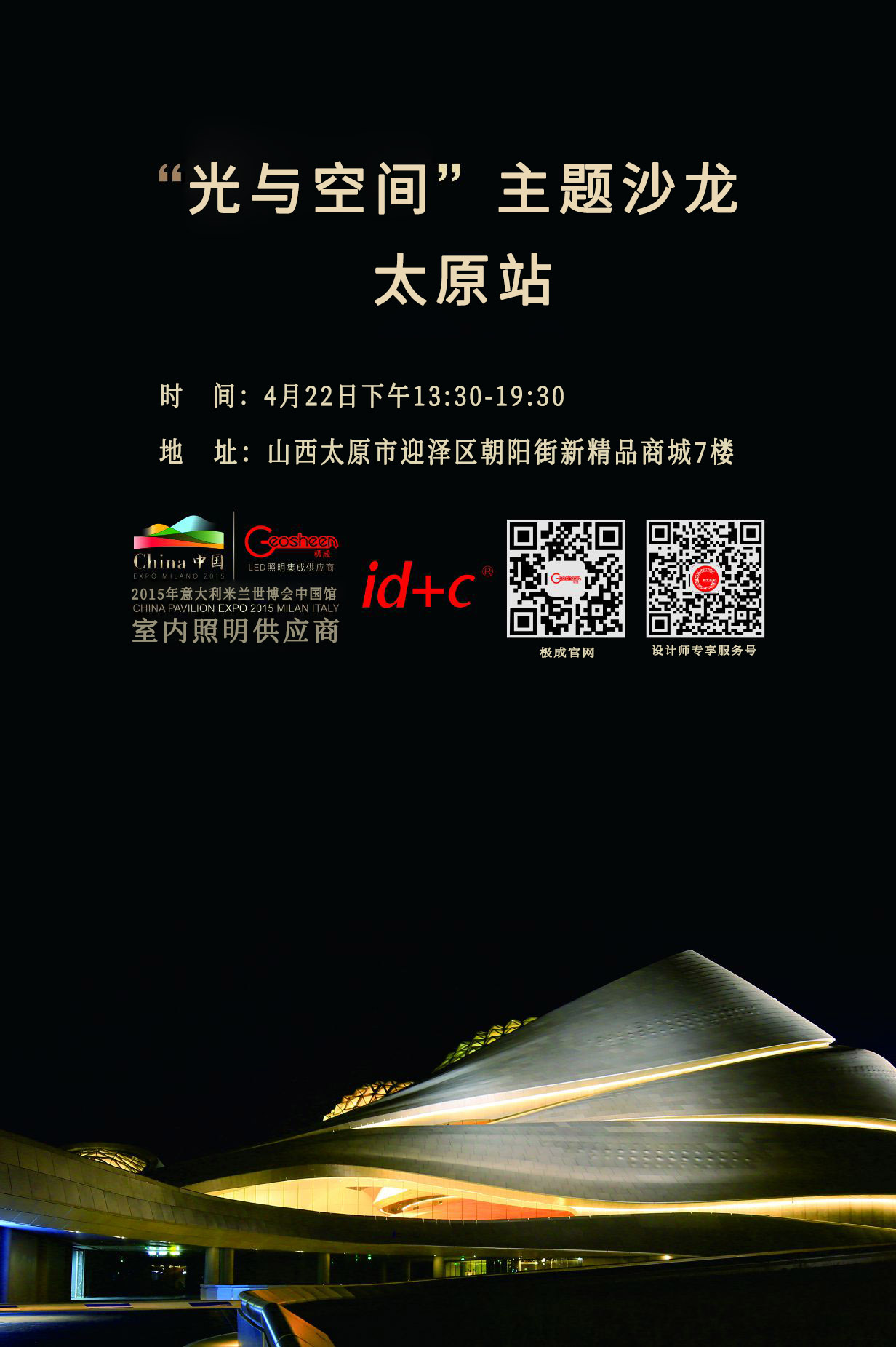 2017年4月22日下午山西太原市迎泽区朝阳街新精品商城7楼7010号,联合《id+c室内设计与装修》杂志主办《光与空间》为主题沙龙。