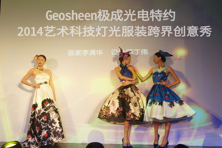 8月31日晚,2014广东时装周即将收官之际,“Geosheen极成光电”特约2014艺术科技灯光服装跨界创意秀在主会场广州轻纺交易园新港82国际时尚发布中心三楼设计师俱乐部闪亮登场。中国纺织工业联合会副会长杨纪朝、中国服装设计师协会主席李当岐、中国服装协会常务副秘书长谢青、广东省服装服饰行业协会会长刘岳屏、广东省服装设计师协会常务副会长丁宁、广州工贸纺织集团董事长李志新、广东省时尚服饰产业经济研究院院长李凯洛、中国服装设计金顶奖获得者计文波等相关领导人及知名服饰品牌莅临现场。
