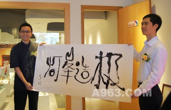 随后,嘉宾们还纷纷为“极成”留下墨宝。台湾《当代设计》杂志出版人兼总编辑黄小石以稳健的笔法写下了“大放光明”四字;澳门设计协会秘书长冯 文伟,以点线构成的艺术形式,点出了一个意义深远的“光”字;台湾高雄市空间艺术学会理事长曾传杰,以象形字的结构,书画结合,描绘出“登峰造极”四个大 字,赢得满堂喝彩。现场留下的创意而有激情的笔墨,无一不体现出各位设计名家的独特风采。