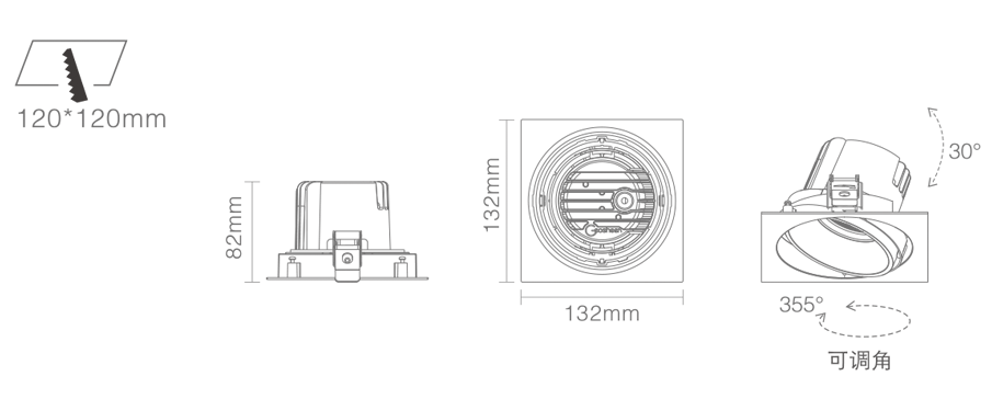 3. Clearance around light fting to be alowed for angular adjustment;保留足够空间以便灯具可作调节角度;