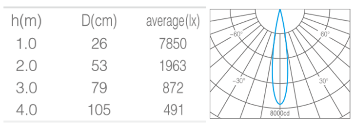 - 光束角15°