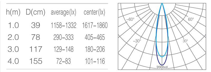 - 光束角20°