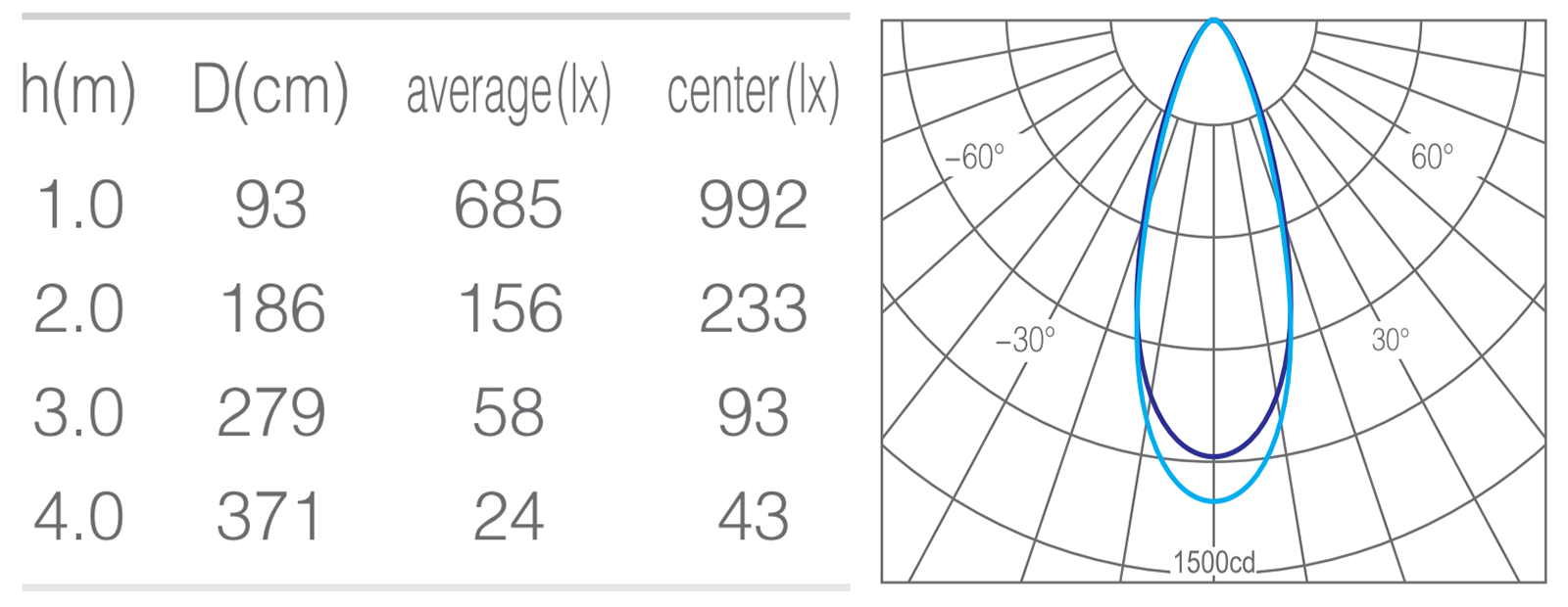 • 光束角60°