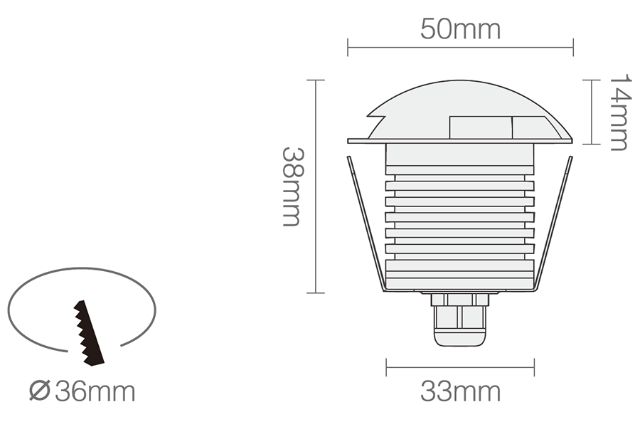 • 开孔尺寸36mm