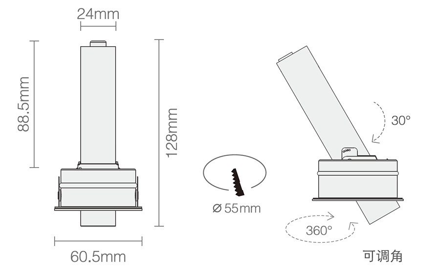 3. Clearance around light fting to be alowed for angular adjustment;保留足够空间以便灯具可作调节角度;