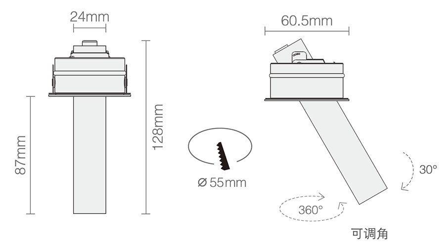 3. Clearance around light fting to be alowed for angular adjustment;保留足够空间以便灯具可作调节角度;