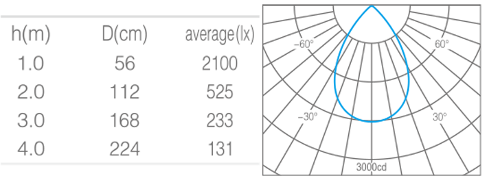 • 光束角45°