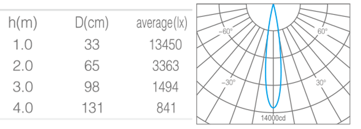 • 光束角15°
