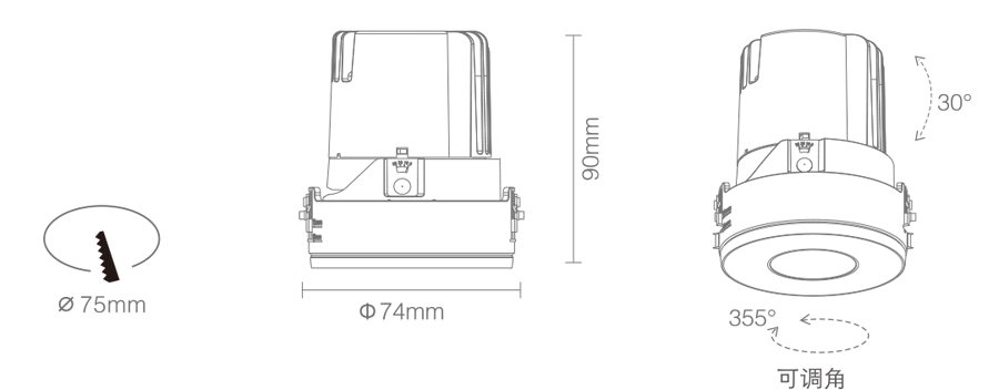3. Clearance around light fting to be alowed for angular adjustment;保留足够空间以便灯具可作调节角度;