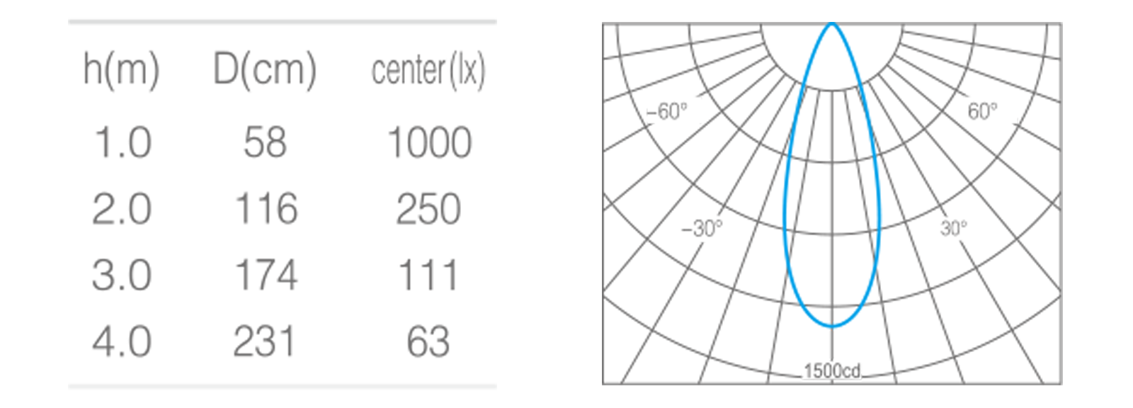 • 峰值光强1000cd