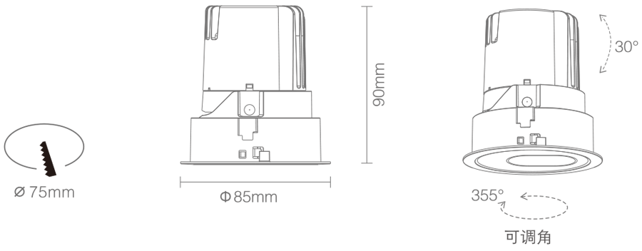 3. Clearance around light fting to be alowed for angular adjustment;保留足够空间以便灯具可作调节角度;