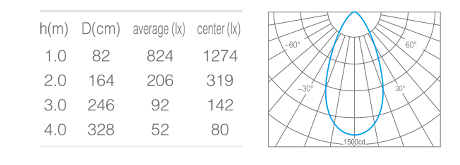 • 峰值光强1274cd