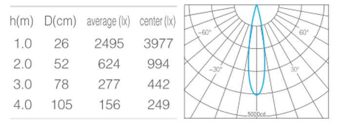 • 光束角15°