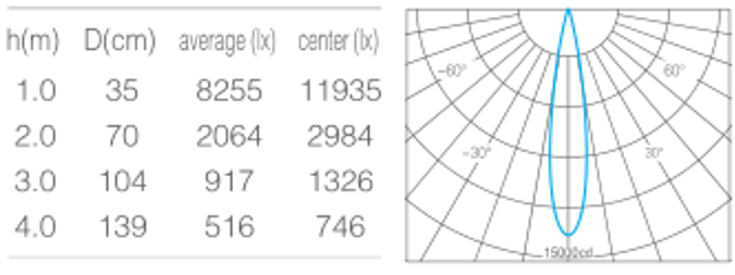 • 光束角15°