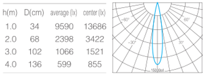 • 光束角15°