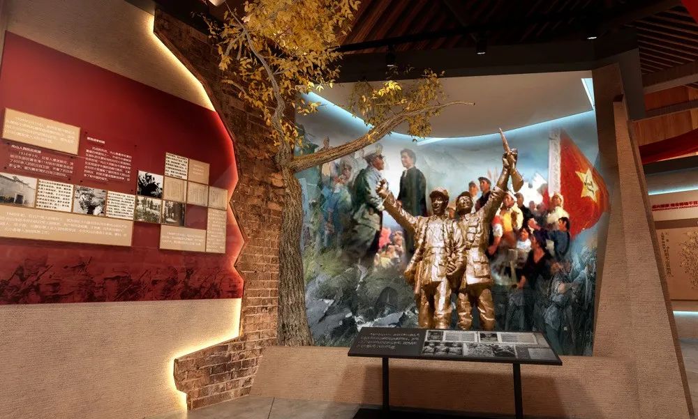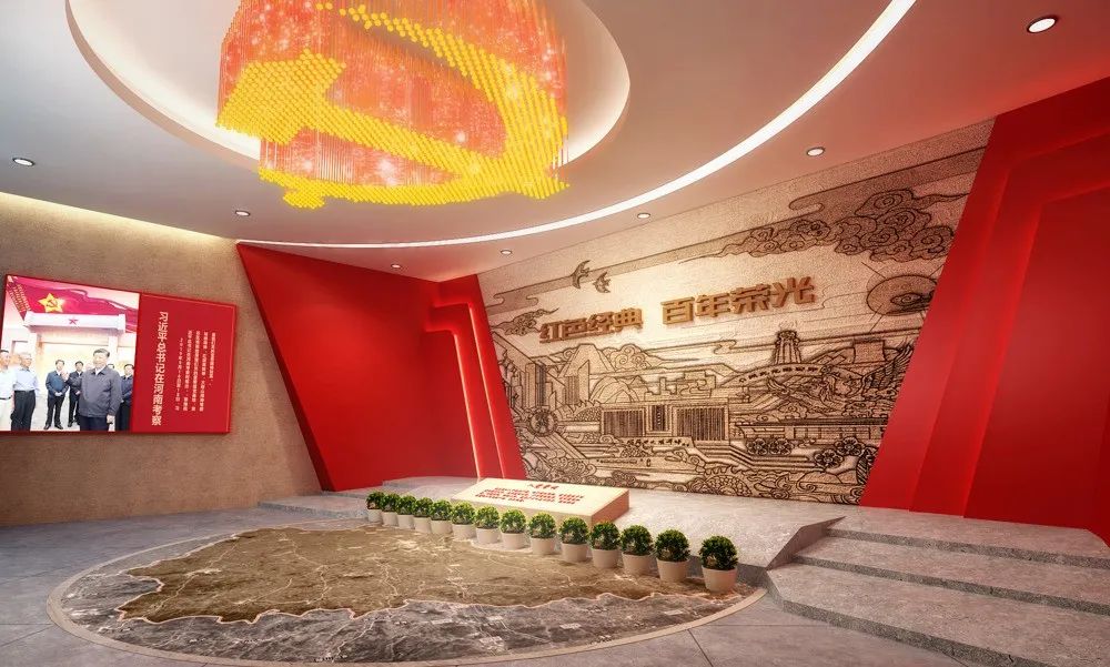 馆内散发着浓厚的红色气息整体墙壁与配色