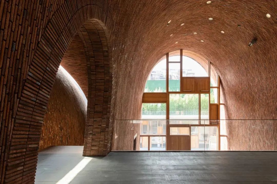 博物馆建筑以模仿老砖窑的拱顶为建筑语言,由八个长度不一、大小各异的多曲面钢筋混凝土拱体结构构成,拱顶借鉴传统窑炉的砌筑工艺,通过内外两侧两层砖之间浇筑混凝土手工建造。