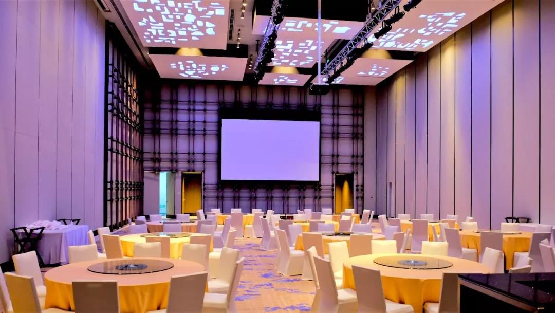 宴会厅和会议厅的照明大量使用漫反射和间接光,给客人提供了一个格外柔和放松的空间。宴会厅通过变色的不规则拉膜天花和暖色灯光氛围的演绎,赋予宴会厅轻柔浪漫的格调。