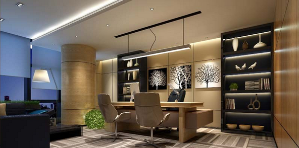 图:采用间接照明的处理手法,利用天花暗藏光源为书桌提供环境光,有效避免灯光直射所造成的眩光,同时安置的隐藏式光源,能有效烘托出书房沉稳的氛围(来源:Geosheen极成应用案例)。