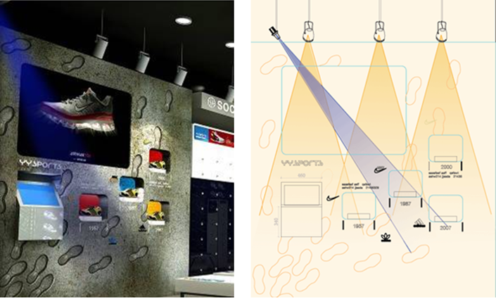 灯具,可以把光线控制到所需的位置,实现设计师所需的效果。把光线控制到顾客最重视的最佳展示区,达到吸引、展示的作用。