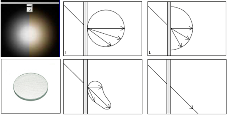 2、散射:平面散射玻璃,可以改变光束的宽度,常见的有乳白亚克力片。