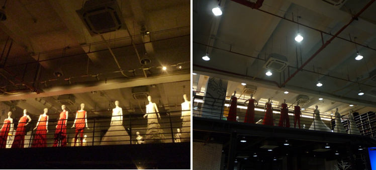有时,高档的商品、高档的店铺、高档的装修,却配以低劣的照明,强烈的眩光使人无法停留。