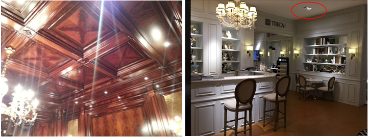 左图:灯具没有防眩效果,停留稍久眼睛就受不了 右图:灯具防眩效果出色,营造了舒适自然的消费购物体验