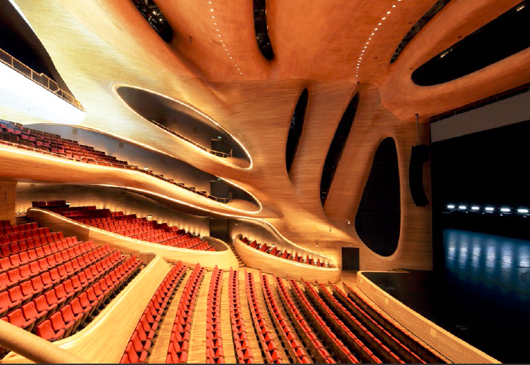 哈尔滨大剧院MAD选择的水曲柳拼接线性质感,木与线条的气息真的为空间带来了“乐器内腔”的感受。
