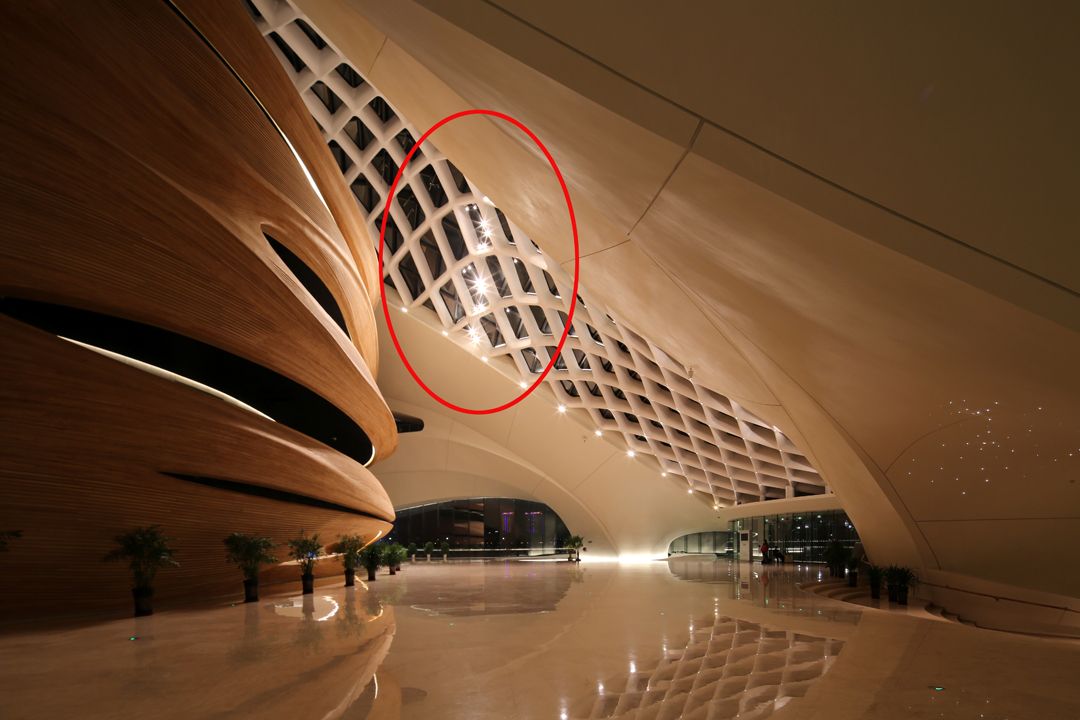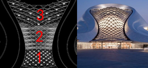 图:走近剧院,中间部分隆起的冰晶体现了极好结构张力
