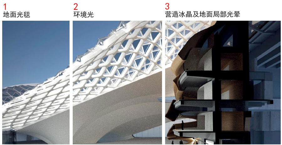 考虑到哈尔滨大剧院地处松花江沿岸湿地,需要充分考虑光线对湿地生态环境影响,而项目周边无其他现代建筑,夜间光环境非常弱,因此可以充分利用视觉的对比而并非绝对值。