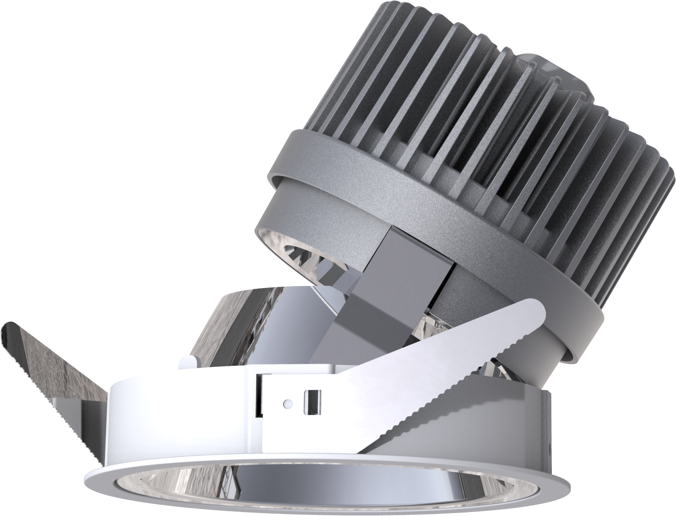 铝合金压铸一体式成型,表面喷砂氧化,防磨损,不易脱色,掉色;可拆卸不锈钢弹片,天花板可安装厚度范围5-30mm,独有的Focus Reflection光学系统,不可调光&可调光(切相调光1-100%)